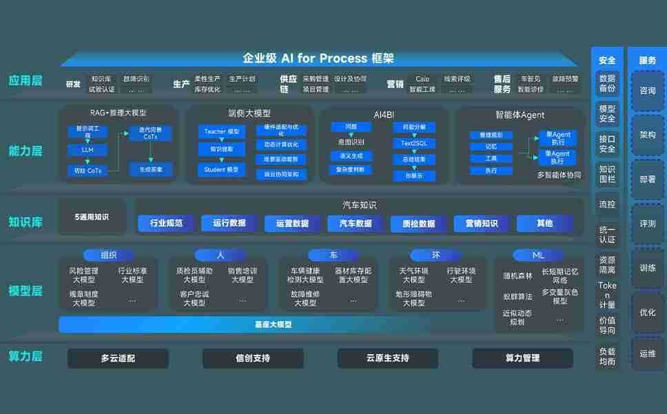 端到端的一站式AI工作空间深度融合了从企业战略规划到日常经营的全流程业务板块,,定向解决车企内部领域多、、、部门多、、链条长、、、场景碎片化等难题,,,支持车企快速构建以AI为核心的生产力写作体系,,,实现任务执行与AI能力的无缝集成与交互